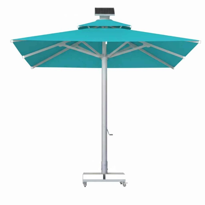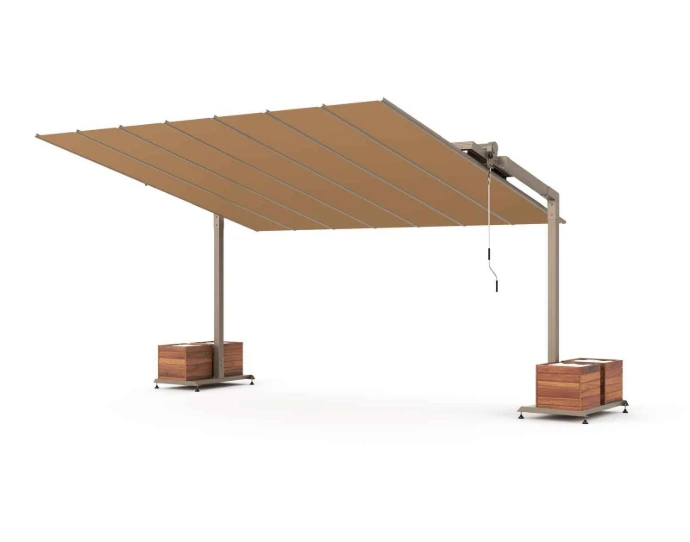 Motorlu ve kumandalı sistemi sayesinde kolay kullanım sunar. Solar enerji, LED aydınlatma ve rüzgar sensörüyle villa, restoran ve otel bahçelerinde üstün konfor sağlar.