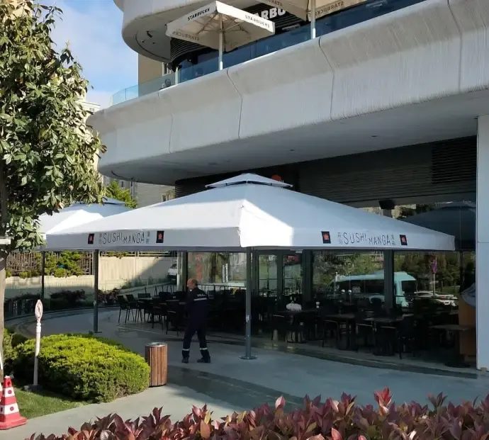 Kafe, restoran, sahil işletmesi ve otel projelerinde sık tercih edilen bu teknoloji, dayanıklı gövde yapısı, rüzgâr direnci ve yüksek tekrarlama ömrü sayesinde yoğun kullanıma uygun bir dış mekân altyapısı sunar.