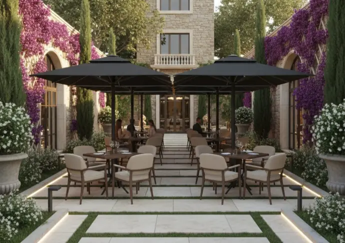 Bu sistemler özellikle otel, restoran ve sosyal alanlarda modern gölgelendirme çözümleri sunar.